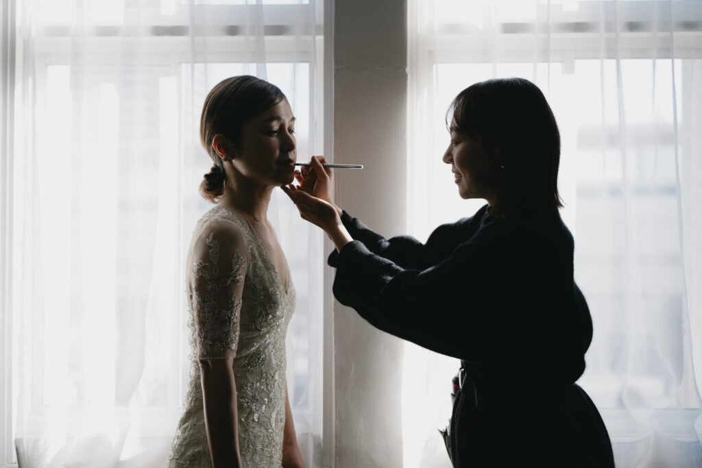 アテンドとしてヘアメイクが同行、ヘアスタイルやリップのお直しなどもおまかせください。